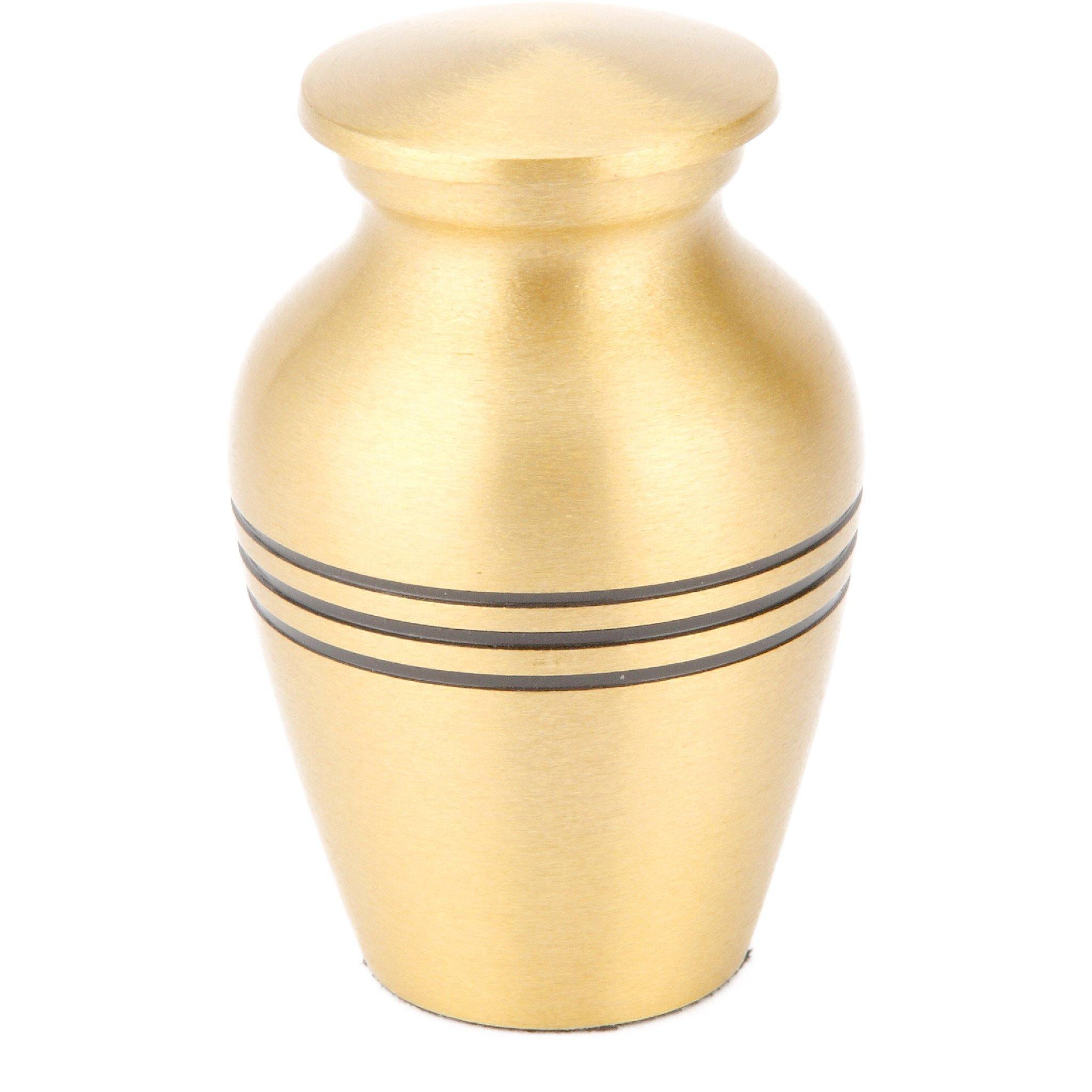 Simple yet elegant, the Maoron Urn is a high quality solid brass urn that comes in two wonderful finishes, either brushed brass or pewter. The matte finish on both of these choices makes this a timeless yet contemporary urn. Skillfully hand-casted by our Urns UK artisans, you can rest assured that ashes will remain safe with the secure threaded lid. This lovely piece also comes in Adult and Heart Keepsake form.