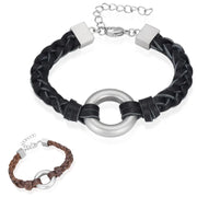 Durable stainless steel and leather bracelet that comes with a small screw top chamber in the cylinder to hold a....